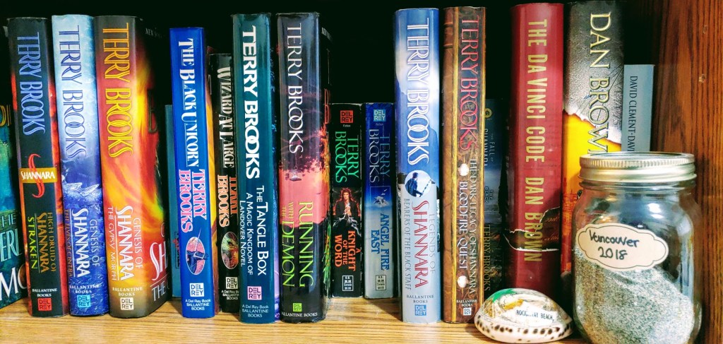 I chose to organize my bookshelves by the authors last name, and this method I found was the easiest way as this is how I think about my books and authors. When I speak about authors that I have read, I have found that I often speak about them using their last names, “I’m reading a Cussler book right now,” or, “Oh Goodkind has a new book out? I’ll have to go pick that up!” I found that in this respect, having my shelves organized in the same way I think about my authors has helped my process greatly. I am able to think of a last name and immediately know where the book I want is, it’s so easy!
